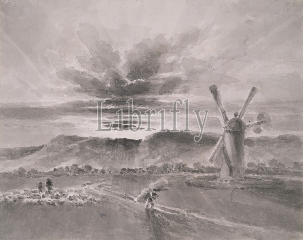Windmill, Shoreham, 1825-1880 Samuel Palmer, Windmill, Wash drawing, Sunset, England, Kent
