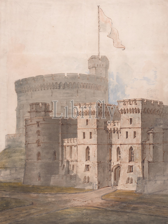 Windsor Castle, Berkshire: The Round Tower, King Edward III Tower and King George IV Gateway, Studio of Sir Jeffry Wyatville, 1766–1840, British, undated, Graphite, pen and black and brown ink, watercolor on moderately thick, slightly textured, cream wove paper, Sheet: 18 3/8 × 13 7/8 inches (46.7 × 35.2 cm), architectural subject