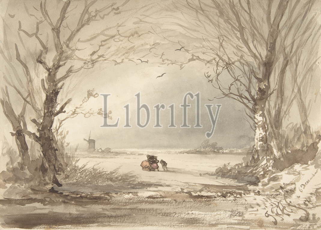 A Winter Landscape, 1854, Watercolor, sheet: 9 1/8 x 12 5/8 in. (23.2 x 32.1 cm), Drawings, Johannes Franciscus Hoppenbrouwers (Dutch, 1819–1866)