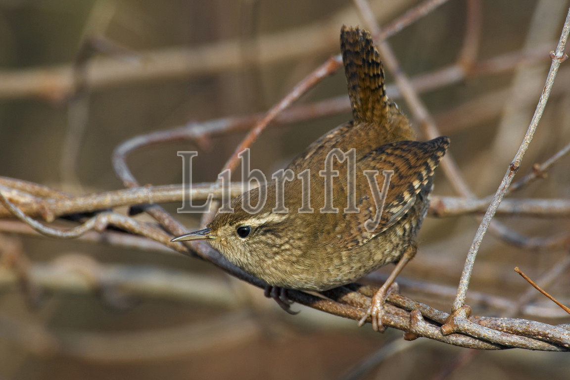 Winter Wren in the scrub, Troglodytes hiemalis, Italy
