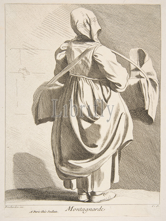 A Woman from the Mountains, 1737, Etching with some engraving, Sheet: 9 1/4 x 6 7/8 in. (23.5 x 17.4 cm), Prints, Anne Claude Philippe de Tubières, comte de Caylus (French, Paris 1692–1765 Paris), After Edme Bouchardon (French, Chaumont 1698–1762 Paris)