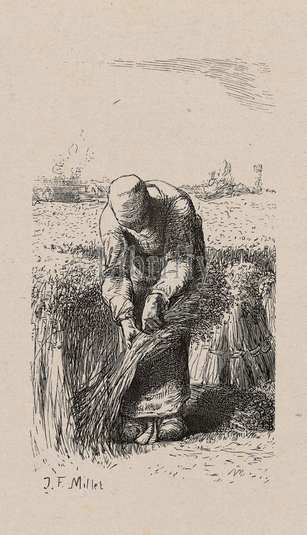 Woman Pulling Flax, 1853, drawing, 1852, Jacques Adrien Lavieille, French, 1818-1862, Jean François Millet, 1814-1875, France, Wood engraving, black, gray China paper, laid down, ivory wove paper, chine collé, 132