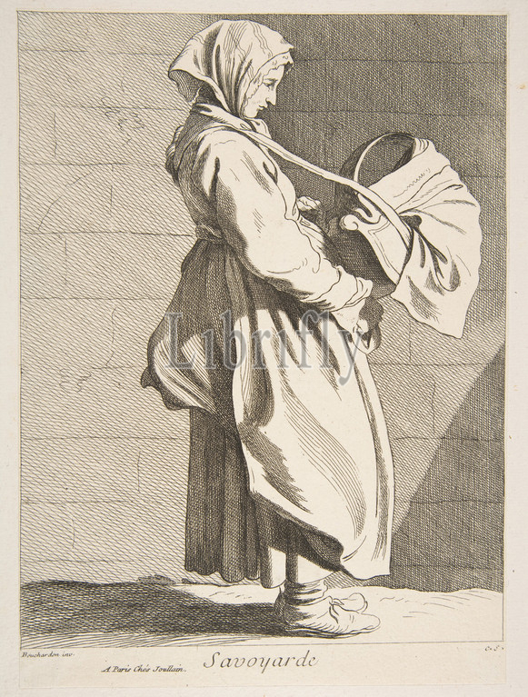 Woman, Savoy, 1742, Etching, engraving, Sheet, 9 3/16 x 6 5/8, 23.4 16.9 cm, Prints, Anne Claude Philippe de Tubières, comte Caylus, French, Paris, 1692–1765, After Edme Bouchardon, Chaumont, 1698–1762