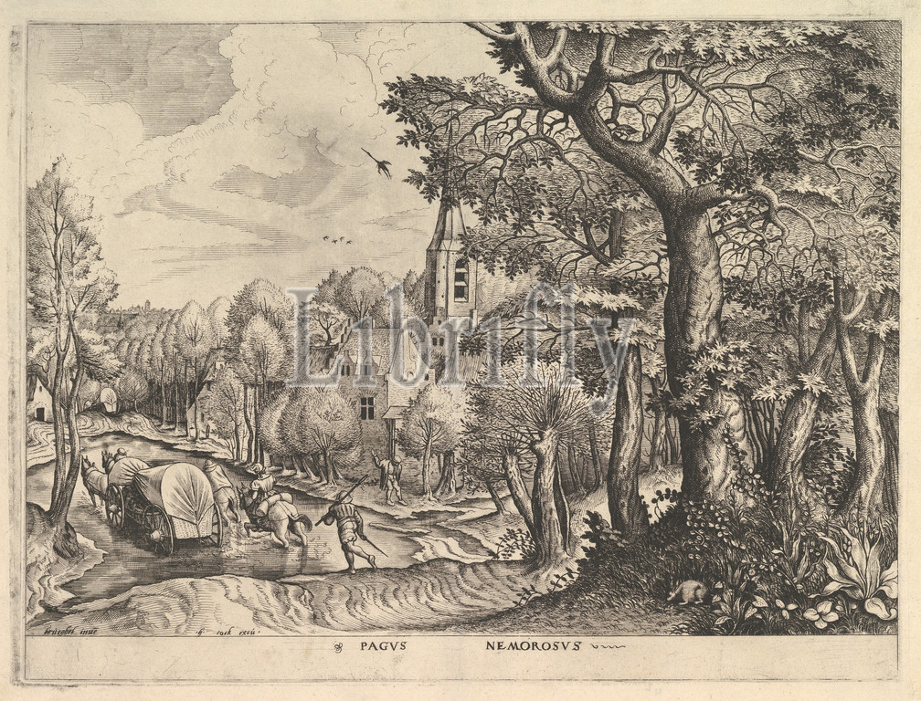 Wooded Region (Pagus Nemorosus) from The Large Landscapes, ca. 1555–56, Etching with engraving; first state of two, sheet: 13 5/8 x 17 7/8 in. (34.6 x 45.4 cm), Prints, After Pieter Bruegel the Elder (Netherlandish, Breda (?) ca. 1525–1569 Brussels), Johannes van Doetecum the elder (Netherlandish, active 1554–ca. 1600, died 1605), Lucas van Doetecum (Netherlandish, active 1554–72, died before 1589)