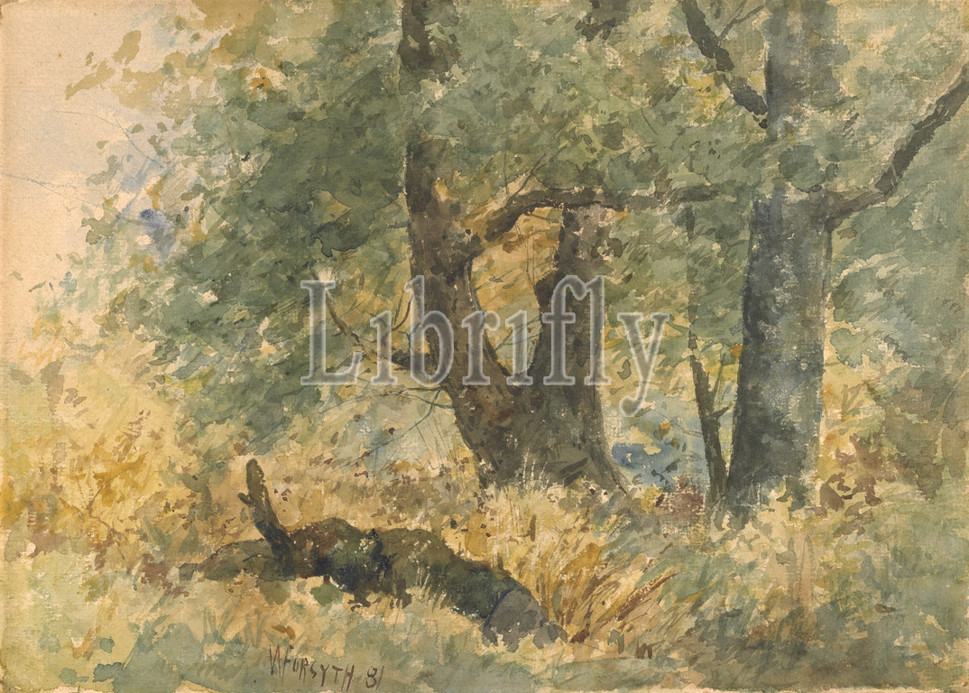 Woodland Landscape, William J. Forsyth (American, 1854-1935), 1881, watercolor, 10 x 13-7/8 in. 18-1/2 x 22 x 3/4 in. (framed), signed and dated in brown, L.C.: W FORSYTH 81