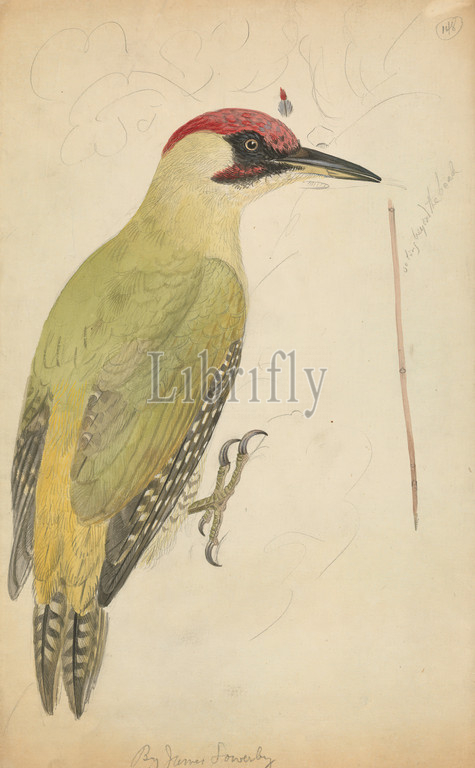 Woodpecker, James Sowerby, 1756–1822, British, Watercolor, graphite, moderately thick, slightly textured, cream wove paper, Sheet, animal art, birds, European Green Woodpecker, woodpecker