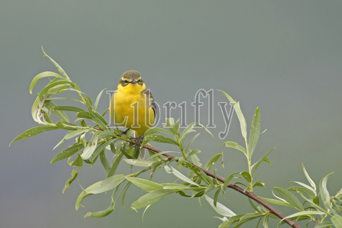 Yellow Wagtail perched on branch, Netherlands