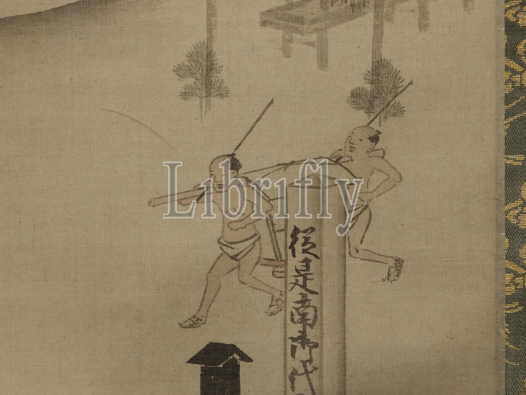 Yoshiwara, Shinagawa, Suzuki Kiitsu, Japanese, 1796-1858, Edo, ink, color, gold, silk, 33-5/8 x 13-1/4, image, 66-7/8 x 20-3/4, overall, Signed, O-kyu, order, Seisei Kiitsu Seal, Shukurin, Asian Art