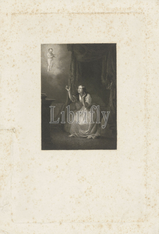 A young woman, vision, young woman, sitting, edge, bed, child, scale, hand, Johann Wilhelm Kaiser, I, 1849, paper, engraving
