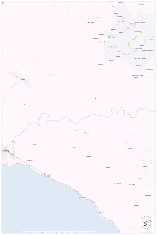 Maps at Librifly - Explore the World, One Letter at a Time – Select a Country from the Alphabet search results: haiti clear search 16.660 / 12.876.990 Entries Page 1 / 167 next page > Deuxieme Section Communale Bonnet a l'Eveque, HT, Haiti, Nord, N 19 36' 8'', S 72 13' 3'', map, Cartascapes Map published in 2024. Explore Cartascapes, a map revealing Earth's diverse landscapes, cultures, … Richard, HT, Haiti, Nord, N 19 34' 59'', S 72 4' 59'', map, Cartascapes Map published in 2024. Explore Cartascapes, a map revealing Earth's diverse landscapes, cultures, and ecosystems. Journey through time… Cayemite, Arrondissement de Marmelade, HT, Haiti, Artibonite, N 19 31' 0'', S 72 22' 0'', map, Cartascapes Map published in 2024. Explore Cartascapes, a map revealing Earth's diverse landscapes, cultures, and… Ti Cote de Fer, Mòl Sen Nikola, HT, Haiti, Nord-Ouest, N 19 38' 3'', S 73 9' 37'', map, Cartascapes Map published in 2024. Explore Cartascapes, a map revealing Earth's diverse landscapes, cultures, and… Chiront, Arrondissement de l'Acul du Nord, HT, Haiti, Nord, N 19 34' 0'', S 72 16' 59'', map, Cartascapes Map published in 2024. Explore Cartascapes, a map revealing Earth's diverse landscapes, cultures, and… Routeau, Arrondissement de Croix des Bouquets, HT, Haiti, Ouest, N 18 40' 0'', S 71 49' 59'', map, Cartascapes Map published in 2024. Explore Cartascapes, a map revealing Earth's diverse landscapes, cultures, … Habitation Morne Bourrique, HT, Haiti, Nord-Ouest, N 19 54' 39'', S 73 9' 36'', map, Cartascapes Map published in 2024. Explore Cartascapes, a map revealing Earth's diverse landscapes, cultures, and… Carrefour L'Eveque, Arrondissement de l'Acul du Nord, HT, Haiti, Nord, N 19 40' 38'', S 72 12' 14'', map, Cartascapes Map published in 2024. Explore Cartascapes, a map revealing Earth's diverse landscapes, … La Jambette, Leyogàn, HT, Haiti, Ouest, N 18 23' 59'', S 72 34' 0'', map, Cartascapes Map published in 2024. Explore Cartascapes, a map revealing Earth's diverse landscapes, cultures, and ecosystems. Journey… Belle Fontaine, HT, Haiti, Ouest, N 18 25' 50'', S 72 5' 34'', map, Cartascapes Map published in 2024. Explore Cartascapes, a map revealing Earth's diverse landscapes, cultures, and ecosystems. Journey… Le Belier, HT, Haiti, Nord, N 19 45' 24'', S 72 10' 35'', map, Cartascapes Map published in 2024. Explore Cartascapes, a map revealing Earth's diverse landscapes, cultures, and ecosystems. Journey through… Margot, HT, Haiti, Nord, N 19 41' 15'', S 72 30' 31'', map, Cartascapes Map published in 2024. Explore Cartascapes, a map revealing Earth's diverse landscapes, cultures, and ecosystems. Journey through time… Doute, Ansdeno, HT, Haiti, GrandʼAnse, N 18 25' 59'', S 74 22' 59'', map, Cartascapes Map published in 2024. Explore Cartascapes, a map revealing Earth's diverse landscapes, cultures, and ecosystems. Journey… Sixieme Grande Colline, HT, Haiti, Ouest, N 18 19' 20'', S 72 41' 31'', map, Cartascapes Map published in 2024. Explore Cartascapes, a map revealing Earth's diverse landscapes, cultures, and ecosystems.… Odino, Gonayiv, HT, Haiti, Artibonite, N 19 33' 55'', S 72 44' 12'', map, Cartascapes Map published in 2024. Explore Cartascapes, a map revealing Earth's diverse landscapes, cultures, and ecosystems. Journey… Garcon Pas Chita, Arrondissement de Mirebalais, HT, Haiti, Centre, N 18 50' 37'', S 72 8' 20'', map, Cartascapes Map published in 2024. Explore Cartascapes, a map revealing Earth's diverse landscapes, … Saurel, Arrondissement de Bainet, HT, Haiti, Sud-Est, N 18 10' 59'', S 72 50' 59'', map, Cartascapes Map published in 2024. Explore Cartascapes, a map revealing Earth's diverse landscapes, cultures, and… Morne Frontal, Arrondissement de Jacmel, HT, Haiti, Sud-Est, N 18 13' 5'', S 72 37' 33'', map, Cartascapes Map published in 2024. Explore Cartascapes, a map revealing Earth's diverse landscapes, cultures, and… Taverno, HT, Haiti, Sud, N 18 20' 57'', S 74 20' 53'', map, Cartascapes Map published in 2024. Explore Cartascapes, a map revealing Earth's diverse landscapes, cultures, and ecosystems. Journey through time… Nanterretiste, Lagonav, HT, Haiti, Ouest, N 18 53' 47'', S 73 11' 57'', map, Cartascapes Map published in 2024. Explore Cartascapes, a map revealing Earth's diverse landscapes, cultures, and ecosystems.… Morne Coucou, Wanament, HT, Haiti, Nord-Est, N 19 31' 0'', S 71 43' 0'', map, Cartascapes Map published in 2024. Explore Cartascapes, a map revealing Earth's diverse landscapes, cultures, and ecosystems.… Derodiere, Arrondissement des Cayes, HT, Haiti, Sud, N 18 21' 0'', S 73 46' 59'', map, Cartascapes Map published in 2024. Explore Cartascapes, a map revealing Earth's diverse landscapes, cultures, and… Riviere Salee, HT, Haiti, Artibonite, N 19 10' 59'', S 72 40' 0'', map, Cartascapes Map published in 2024. Explore Cartascapes, a map revealing Earth's diverse landscapes, cultures, and ecosystems. Journey… Nabos, HT, Haiti, GrandʼAnse, N 18 22' 0'', S 73 17' 59'', map, Cartascapes Map published in 2024. Explore Cartascapes, a map revealing Earth's diverse landscapes, cultures, and ecosystems. Journey through… Morne Mars, HT, Haiti, Artibonite, N 18 58' 14'', S 72 39' 25'', map, Cartascapes Map published in 2024. Explore Cartascapes, a map revealing Earth's diverse landscapes, cultures, and ecosystems. Journey… Gros Sable, Oboy, HT, Haiti, Nord, N 19 51' 0'', S 72 31' 59'', map, Cartascapes Map published in 2024. Explore Cartascapes, a map revealing Earth's diverse landscapes, cultures, and ecosystems. Journey… Estere Dere, Mòl Sen Nikola, HT, Haiti, Nord-Ouest, N 19 41' 59'', S 73 9' 0'', map, Cartascapes Map published in 2024. Explore Cartascapes, a map revealing Earth's diverse landscapes, cultures, and… Hatte Chapeau, HT, Haiti, GrandʼAnse, N 18 40' 59'', S 74 15' 0'', map, Cartascapes Map published in 2024. Explore Cartascapes, a map revealing Earth's diverse landscapes, cultures, and ecos