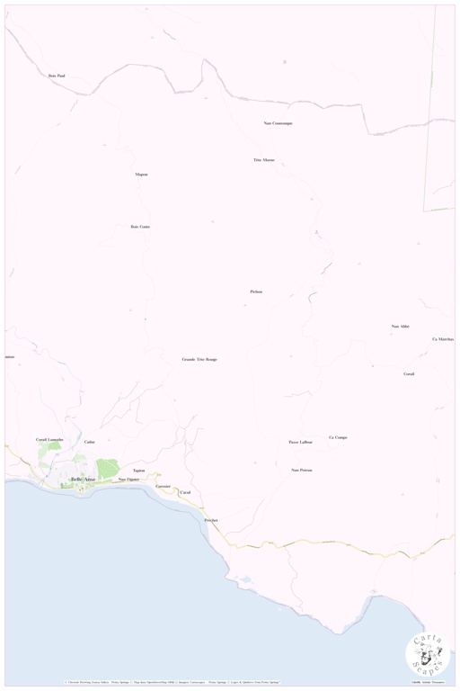 Maps at Librifly - Explore the World, One Letter at a Time – Select a Country from the Alphabet search results: haiti clear search 16.660 / 12.876.990 Entries < previous page Page 27 / 167 next page > Zoranger, Arrondissement de Bainet, HT, Haiti, Sud-Est, N 18 13' 0'', S 72 49' 0'', map, Cartascapes Map published in 2024. Explore Cartascapes, a map revealing Earth's diverse landscapes, cultures, and… Riviere Berzeaud, HT, Haiti, Sud, N 18 19' 18'', S 73 4' 4'', map, Cartascapes Map published in 2024. Explore Cartascapes, a map revealing Earth's diverse landscapes, cultures, and ecosystems. Journey… Belladere, Arrondissement de Lascahobas, HT, Haiti, Centre, N 18 52' 4'', S 71 45' 43'', map, Cartascapes Map published in 2024. Explore Cartascapes, a map revealing Earth's diverse landscapes, cultures, and… Morne Pite, HT, Haiti, Artibonite, N 18 59' 57'', S 72 40' 9'', map, Cartascapes Map published in 2024. Explore Cartascapes, a map revealing Earth's diverse landscapes, cultures, and ecosystems. Journey… Charut, HT, Haiti, Nord, N 19 43' 46'', S 72 10' 19'', map, Cartascapes Map published in 2024. Explore Cartascapes, a map revealing Earth's diverse landscapes, cultures, and ecosystems. Journey through time… Massacre, Arrondissement de Mirebalais, HT, Haiti, Centre, N 18 48' 0'', S 72 15' 0'', map, Cartascapes Map published in 2024. Explore Cartascapes, a map revealing Earth's diverse landscapes, cultures, and… Grand Bois, Arrondissement de Croix des Bouquets, HT, Haiti, Ouest, N 18 31' 59'', S 72 4' 0'', map, Cartascapes Map published in 2024. Explore Cartascapes, a map revealing Earth's diverse landscapes, … Premiere Morne Rouge, HT, Haiti, Nord, N 19 43' 59'', S 72 17' 1'', map, Cartascapes Map published in 2024. Explore Cartascapes, a map revealing Earth's diverse landscapes, cultures, and ecosystems. Journey… Nan Noco, Gonayiv, HT, Haiti, Artibonite, N 19 28' 59'', S 72 25' 0'', map, Cartascapes Map published in 2024. Explore Cartascapes, a map revealing Earth's diverse landscapes, cultures, and ecosystems.… Phaton, Arrondissement de Croix des Bouquets, HT, Haiti, Ouest, N 18 37' 59'', S 72 16' 59'', map, Cartascapes Map published in 2024. Explore Cartascapes, a map revealing Earth's diverse landscapes, cultures, … Ducasse, Grann Rivyè di Nò, HT, Haiti, Nord, N 19 31' 0'', S 72 7' 0'', map, Cartascapes Map published in 2024. Explore Cartascapes, a map revealing Earth's diverse landscapes, cultures, and ecosystems.… Gris-Gris, Arrondissement de Bainet, HT, Haiti, Sud-Est, N 18 13' 0'', S 72 58' 0'', map, Cartascapes Map published in 2024. Explore Cartascapes, a map revealing Earth's diverse landscapes, cultures, and… Potier, Arrondissement de Jacmel, HT, Haiti, Sud-Est, N 18 17' 48'', S 72 42' 14'', map, Cartascapes Map published in 2024. Explore Cartascapes, a map revealing Earth's diverse landscapes, cultures, and… Ravine Trou Dore, HT, Haiti, Centre, N 18 56' 59'', S 71 55' 59'', map, Cartascapes Map published in 2024. Explore Cartascapes, a map revealing Earth's diverse landscapes, cultures, and ecosystems. Journey… Mathurin, Sen Rafayèl, HT, Haiti, Nord, N 19 28' 0'', S 72 10' 59'', map, Cartascapes Map published in 2024. Explore Cartascapes, a map revealing Earth's diverse landscapes, cultures, and ecosystems. Journey… Chaine Cabrit, Arrondissement de Vallières, HT, Haiti, Nord-Est, N 19 18' 0'', S 71 54' 0'', map, Cartascapes Map published in 2024. Explore Cartascapes, a map revealing Earth's diverse landscapes, cultures, … La Cour Joseph, Lagonav, HT, Haiti, Ouest, N 18 49' 9'', S 72 53' 2'', map, Cartascapes Map published in 2024. Explore Cartascapes, a map revealing Earth's diverse landscapes, cultures, and ecosystems.… Saint Simon, Wanament, HT, Haiti, Nord-Est, N 19 23' 59'', S 71 43' 59'', map, Cartascapes Map published in 2024. Explore Cartascapes, a map revealing Earth's diverse landscapes, cultures, and ecosystems.… Godin, Arrondissement de Saint-Marc, HT, Haiti, Artibonite, N 19 0' 0'', S 72 25' 59'', map, Cartascapes Map published in 2024. Explore Cartascapes, a map revealing Earth's diverse landscapes, cultures, and… Filbert, Arrondissement des Cayes, HT, Haiti, Sud, N 18 16' 59'', S 73 52' 59'', map, Cartascapes Map published in 2024. Explore Cartascapes, a map revealing Earth's diverse landscapes, cultures, and… Nan Saut, Arcahaie, HT, Haiti, Ouest, N 18 55' 0'', S 72 27' 0'', map, Cartascapes Map published in 2024. Explore Cartascapes, a map revealing Earth's diverse landscapes, cultures, and ecosystems. Journey… Mendos, Koto, HT, Haiti, Sud, N 18 15' 0'', S 74 4' 0'', map, Cartascapes Map published in 2024. Explore Cartascapes, a map revealing Earth's diverse landscapes, cultures, and ecosystems. Journey through time… Baie d'Orange, Belans, HT, Haiti, Sud-Est, N 18 16' 45'', S 72 13' 18'', map, Cartascapes Map published in 2024. Explore Cartascapes, a map revealing Earth's diverse landscapes, cultures, and ecosystems.… Petite Source, Arrondissement de Croix des Bouquets, HT, Haiti, Ouest, N 18 23' 59'', S 72 7' 0'', map, Cartascapes Map published in 2024. Explore Cartascapes, a map revealing Earth's diverse landscapes, … Raynald, Arrondissement de Corail, HT, Haiti, GrandʼAnse, N 18 34' 0'', S 74 1' 0'', map, Cartascapes Map published in 2024. Explore Cartascapes, a map revealing Earth's diverse landscapes, cultures, and… Pic Bonnet Carre, Arrondissement d'Aquin, HT, Haiti, Sud, N 18 19' 59'', S 73 24' 0'', map, Cartascapes Map published in 2024. Explore Cartascapes, a map revealing Earth's diverse landscapes, cultures, and… Deuxieme Champlois, HT, Haiti, Sud, N 18 22' 18'', S 73 51' 4'', map, Cartascapes Map published in 2024. Explore Cartascapes, a map revealing Earth's diverse landscapes, cultures, and ecosystems. Journey… Fifie, HT, Haiti, Artibonite, N 19 6' 26'', S 72 22' 23'', map, Cartascapes Map published in 2024. Explore Cartascapes, a map revealing Earth's diverse landscapes, cultures, and 