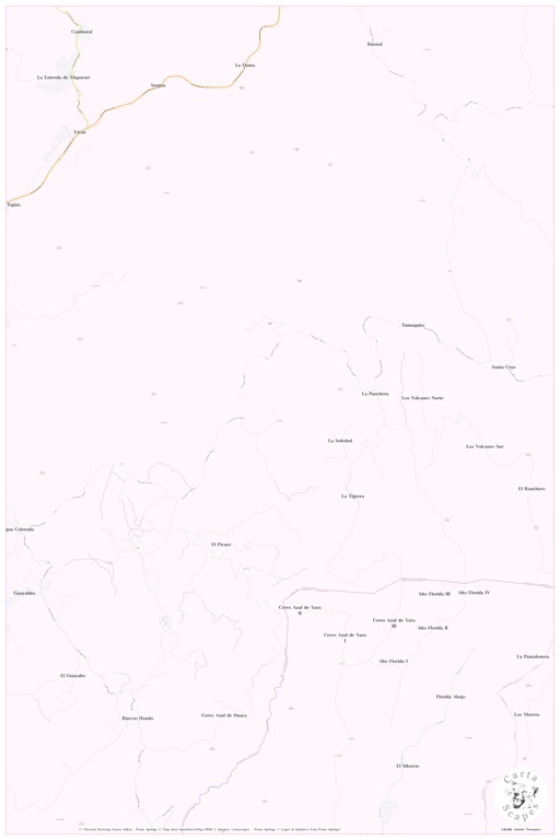 Maps at Librifly - Explore the World, One Letter at a Time – Select a Country from the Alphabet search results: venezuela clear search 69.182 / 12.876.990 Entries < previous page Page 18 / 692 next page > Los Pedales, Municipio Jesús Enrique Lossada, VE, Venezuela, Zulia, N 10 35' 59'', S 72 22' 59'', map, Cartascapes Map published in 2024. Explore Cartascapes, a map revealing Earth's diverse landscapes, … Chacaracual, Municipio Libertador, VE, Venezuela, Sucre, N 10 35' 59'', S 63 0' 0'', map, Cartascapes Map published in 2024. Explore Cartascapes, a map revealing Earth's diverse landscapes, cultures, and… Cano Platanal, VE, Venezuela, Apure, N 7 28' 8'', S 69 45' 32'', map, Cartascapes Map published in 2024. Explore Cartascapes, a map revealing Earth's diverse landscapes, cultures, and ecosystems. Journey… Rio Orusa, VE, Venezuela, Miranda, N 10 22' 59'', S 66 30' 0'', map, Cartascapes Map published in 2024. Explore Cartascapes, a map revealing Earth's diverse landscapes, cultures, and ecosystems. Journey… La Curva, Municipio Valmore Rodríguez, VE, Venezuela, Zulia, N 9 55' 20'', S 71 5' 41'', map, Cartascapes Map published in 2024. Explore Cartascapes, a map revealing Earth's diverse landscapes, cultures, and… Cano Los Caballos, VE, Venezuela, Cojedes, N 9 22' 3'', S 67 57' 36'', map, Cartascapes Map published in 2024. Explore Cartascapes, a map revealing Earth's diverse landscapes, cultures, and ecosystems.… Altamira, Municipio Aguasay, VE, Venezuela, Monagas, N 9 20' 38'', S 63 47' 7'', map, Cartascapes Map published in 2024. Explore Cartascapes, a map revealing Earth's diverse landscapes, cultures, and… Cano Carrillo, VE, Venezuela, Trujillo, N 9 37' 1'', S 71 3' 25'', map, Cartascapes Map published in 2024. Explore Cartascapes, a map revealing Earth's diverse landscapes, cultures, and ecosystems. Journey… Costa de Payara, Municipio Achaguas, VE, Venezuela, Apure, N 7 46' 15'', S 67 58' 38'', map, Cartascapes Map published in 2024. Explore Cartascapes, a map revealing Earth's diverse landscapes, cultures, and… La Florida, Municipio Barinas, VE, Venezuela, Barinas, N 8 24' 0'', S 70 16' 0'', map, Cartascapes Map published in 2024. Explore Cartascapes, a map revealing Earth's diverse landscapes, cultures, and… Palmarejo, Municipio Heres, VE, Venezuela, Bolívar, N 7 48' 45'', S 64 15' 57'', map, Cartascapes Map published in 2024. Explore Cartascapes, a map revealing Earth's diverse landscapes, cultures, and… La Zona, VE, Venezuela, Zulia, N 10 6' 18'', S 70 39' 14'', map, Cartascapes Map published in 2024. Explore Cartascapes, a map revealing Earth's diverse landscapes, cultures, and ecosystems. Journey through… Hacienda El Amparo, VE, Venezuela, Lara, N 9 53' 19'', S 70 8' 23'', map, Cartascapes Map published in 2024. Explore Cartascapes, a map revealing Earth's diverse landscapes, cultures, and ecosystems. Journey… Morichal Cabecera de La Mata, VE, Venezuela, Monagas, N 9 23' 35'', S 63 39' 45'', map, Cartascapes Map published in 2024. Explore Cartascapes, a map revealing Earth's diverse landscapes, cultures, and… Isla La Ceiba, VE, Venezuela, Bolívar, N 8 1' 14'', S 64 18' 45'', map, Cartascapes Map published in 2024. Explore Cartascapes, a map revealing Earth's diverse landscapes, cultures, and ecosystems. Journey… Los Aceitunos, VE, Venezuela, Falcón, N 10 42' 43'', S 70 59' 35'', map, Cartascapes Map published in 2024. Explore Cartascapes, a map revealing Earth's diverse landscapes, cultures, and ecosystems. Journey… La Carabela, Municipio Barinas, VE, Venezuela, Barinas, N 8 43' 0'', S 70 20' 59'', map, Cartascapes Map published in 2024. Explore Cartascapes, a map revealing Earth's diverse landscapes, cultures, and… Fundo Puerto Caribe, Municipio Rómulo Gallegos, VE, Venezuela, Apure, N 6 56' 17'', S 69 27' 11'', map, Cartascapes Map published in 2024. Explore Cartascapes, a map revealing Earth's diverse landscapes, … San Ignacio, Municipio Andrés Bello, VE, Venezuela, Miranda, N 10 15' 12'', S 66 1' 14'', map, Cartascapes Map published in 2024. Explore Cartascapes, a map revealing Earth's diverse landscapes, cultures, … Punta Trapiche, VE, Venezuela, Sucre, N 10 27' 35'', S 63 44' 49'', map, Cartascapes Map published in 2024. Explore Cartascapes, a map revealing Earth's diverse landscapes, cultures, and ecosystems. Journey… El Silencio, Municipio Páez, VE, Venezuela, Miranda, N 10 12' 56'', S 65 53' 26'', map, Cartascapes Map published in 2024. Explore Cartascapes, a map revealing Earth's diverse landscapes, cultures, and… Loma del Sonador, Municipio Antonio José de Sucre, VE, Venezuela, Barinas, N 8 23' 7'', S 70 51' 39'', map, Cartascapes Map published in 2024. Explore Cartascapes, a map revealing Earth's diverse landscapes, … Rio Otapaca, VE, Venezuela, Bolívar, N 6 50' 59'', S 61 49' 59'', map, Cartascapes Map published in 2024. Explore Cartascapes, a map revealing Earth's diverse landscapes, cultures, and ecosystems. Journey… Hacienda Zapateral, Municipio Juan José Mora, VE, Venezuela, Carabobo, N 10 33' 14'', S 68 13' 31'', map, Cartascapes Map published in 2024. Explore Cartascapes, a map revealing Earth's diverse landscapes, … Totuche, Municipio Torres, VE, Venezuela, Lara, N 10 5' 59'', S 70 40' 0'', map, Cartascapes Map published in 2024. Explore Cartascapes, a map revealing Earth's diverse landscapes, cultures, and ecosystems.… Vaquera Pauraca, Municipio Rosario de Perijá, VE, Venezuela, Zulia, N 10 26' 21'', S 72 19' 28'', map, Cartascapes Map published in 2024. Explore Cartascapes, a map revealing Earth's diverse landscapes, … El Copey, Municipio Lander, VE, Venezuela, Miranda, N 10 1' 32'', S 66 36' 52'', map, Cartascapes Map published in 2024. Explore Cartascapes, a map revealing Earth's diverse landscapes, cultures, and… Cerro Los Chinchorros, Municipio Vargas, VE, Venezuela, Vargas, N 10 28' 7'', S 67 20' 9'', map, Cartascapes Map published in 2024. Explore Cartascapes, a map revealing Earth's